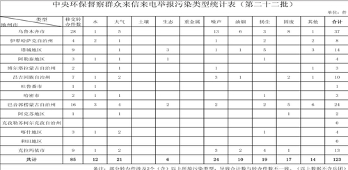 9月1日22时许,中央第八环境保护督察组向我区移交第二十二批115件转办件。其中,自治区85件,新疆生产建设兵团30件。